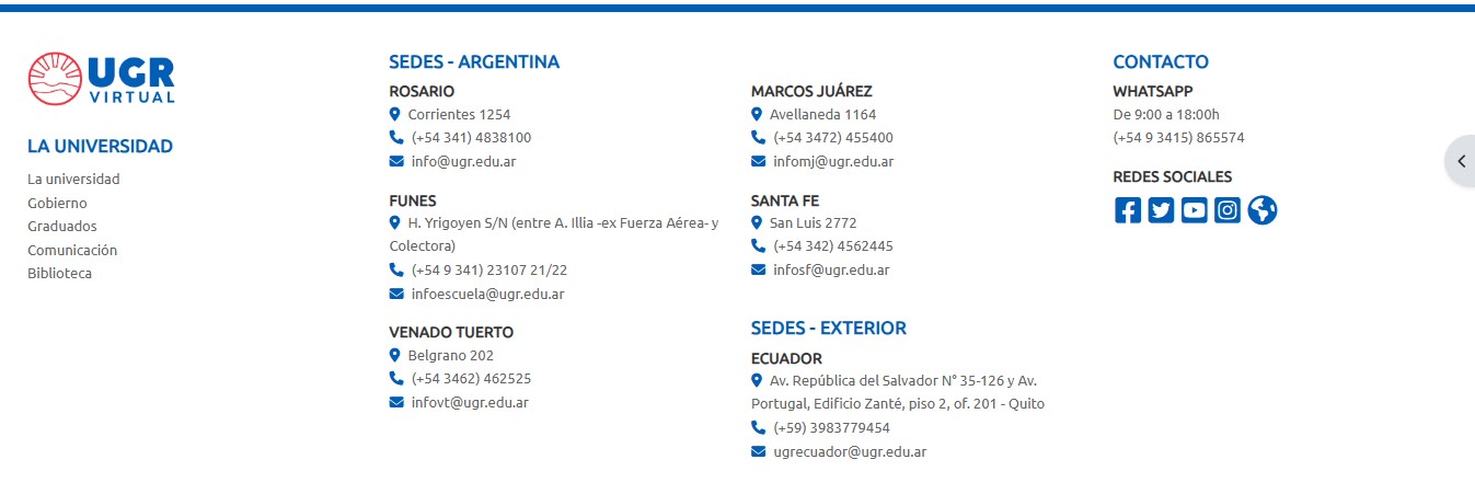 La Universidad del Gran Rosario, con sede central en Corrientes 1254 (Rosario, Santa Fe), utiliza una plataforma educativa basada en Moodle para impartir clases sincrónicas y asincrónicas, tanto a estudiantes de Argentina como de Ecuador. Además, funciona como soporte para las clases presenciales, brindando acceso a materiales, entregas y recursos académicos