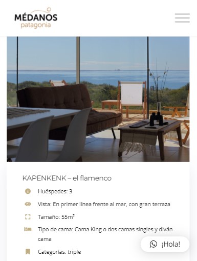 Entre octubre de 2023 y mayo de 2024 llevé adelante el rediseño y mantenimiento del sitio de reservas Médanos Patagonia. El cliente me contactó para resolver una serie de problemas que afectaban directamente la conversión: muchos usuarios no lograban concretar su reserva y se generaban numerosas consultas por WhatsApp sobre información ya publicada en el sitio.